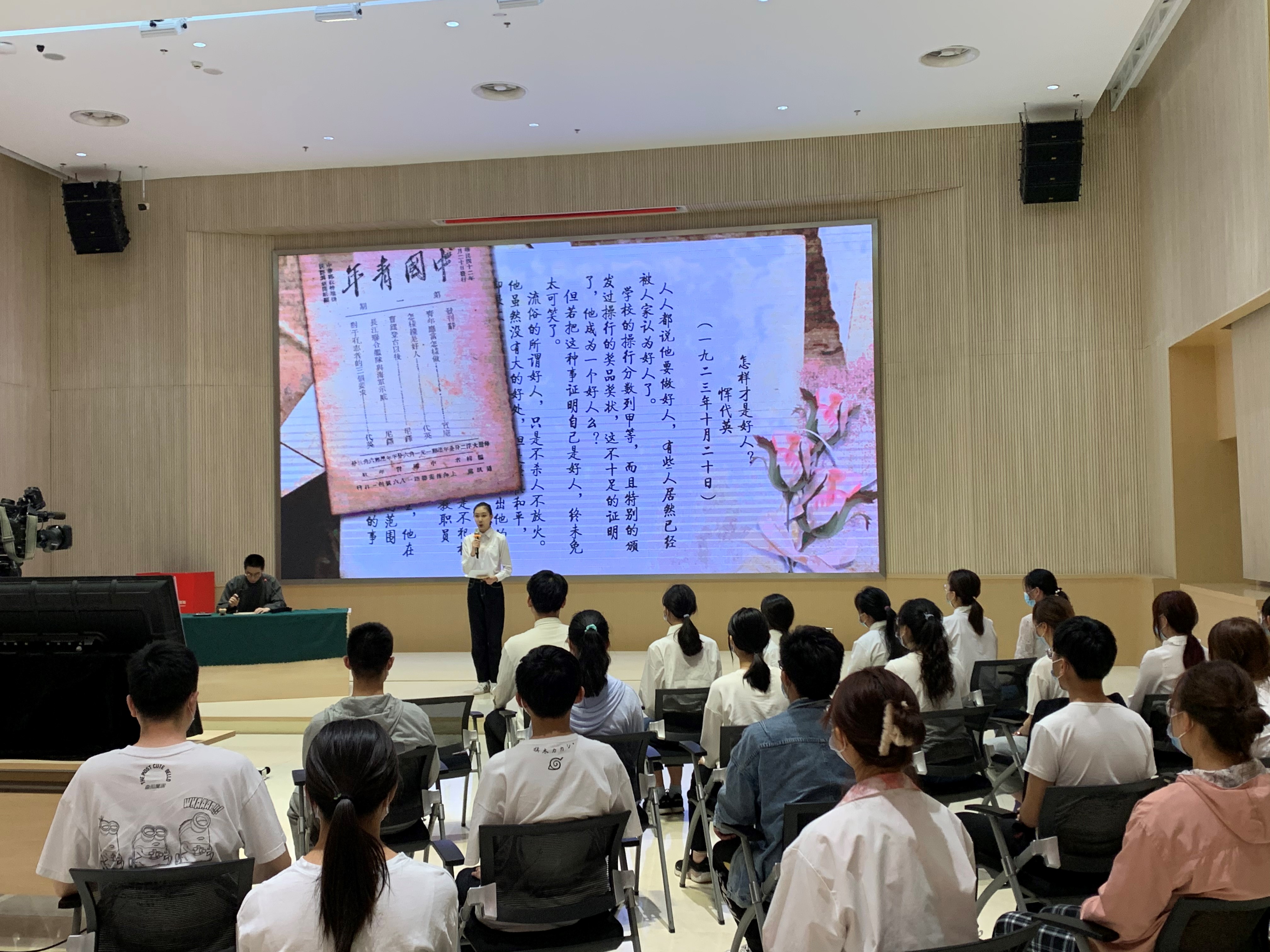 随着活动舞台的搭建,本次展演也在热烈的掌声中拉开了序幕。我院艺术系的志愿者们分别饰演了以恽代英、冷少农、成贻宾为代表的雨花英烈,通过描述烈士家书、文章以及当代青年回信,艺术化演绎了20世纪“00后”和21世纪“00后”穿越时空的对话,突出呈现了当代青年继承先烈遗志、传承红色基因以及建功时代新篇的理想信念。在可歌可泣的演出中,革命烈士对事业的执着、对人生的看法和他们对亲人的深情,通过志愿者的演绎得到了生动的体现。除此之外,演出中的当代青年对烈士的崇敬及其对未来的憧憬也十分令人欣慰。