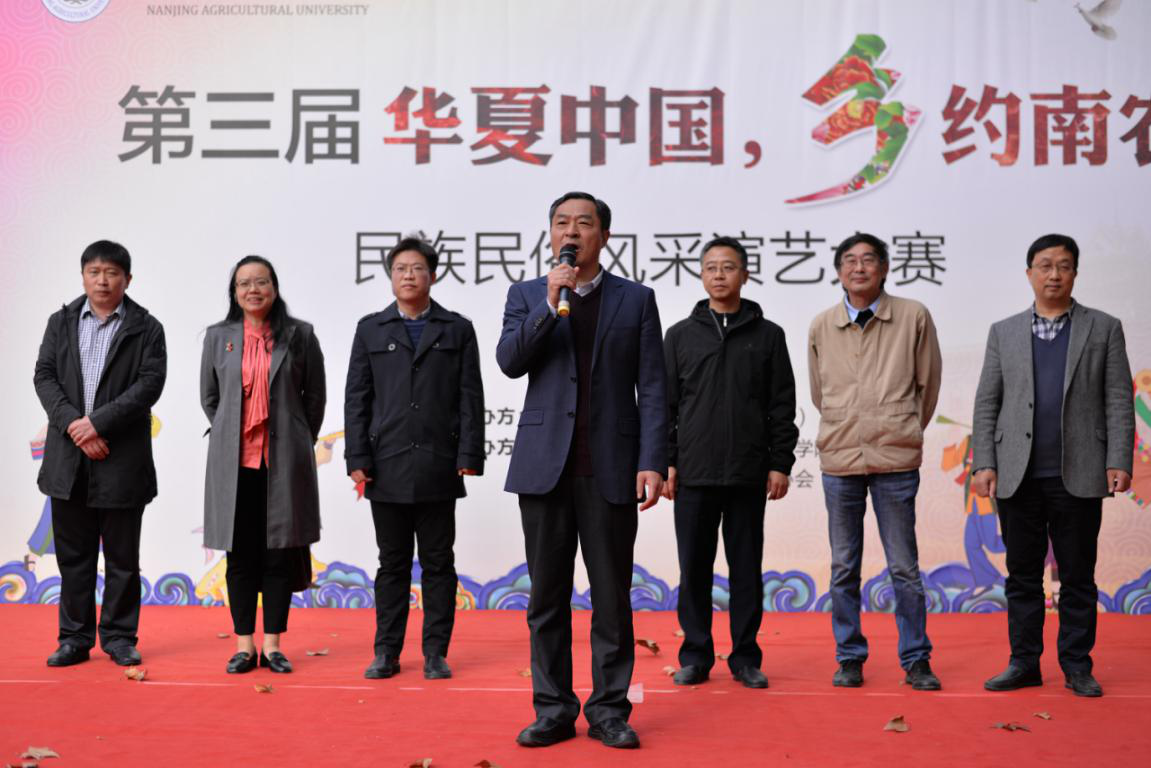 11月14日中午,bwi437官网紫金中国传统文化节暨民族文化展活动在玉兰路隆重拉开帷幕。本次活动由校学生工作部(处)主办,437必赢会员中心与校民族文化传播协会共同承办。校党委副书记刘营军、学生工作部(处)处长刘亮等领导出席了开幕式,校党委宣传部、学生工作部(处)、437必赢会员中心主要领导和我校500多名不同民族大学生一同出席了现场活动。bwi437官网党委副书记刘营军宣布,第三届bwi437官网紫金文化艺术节正式开幕,并前往展览会现场参观。