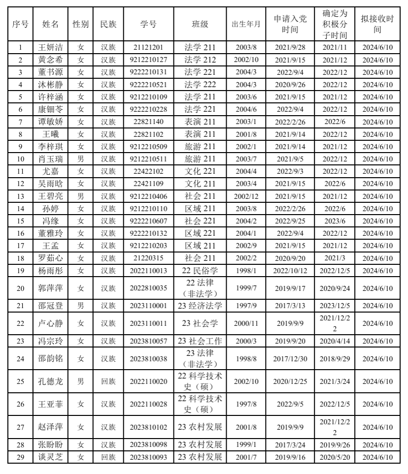 公示时间为即日起7天内(6月3日—6月9日),凡对上述同志入党有异议,请以书面的形式向学院党委反映。