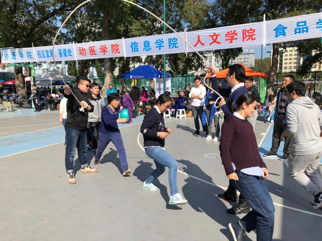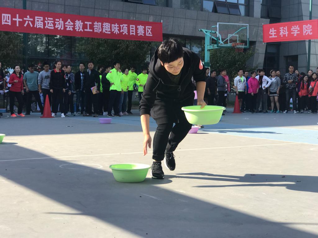 趣味比赛中,老师纷纷挽袖上阵,参与到播种收割,集体跳绳,定点投篮,企鹅漫步等项目中来。这些项目看似简单,实则对运动员的耐性和平衡能力有很高要求,如何以最短的距离冲向终点,实现“步步为营”,老师们自有妙招。有的加快手上传递动作缩短时间,有的增大跳跃的距离,充满欢声笑语的同时也“险情频发”,手脚配合不当,失去协调险些绊倒自己,让场外的观众着实提心吊胆。“真是太开心了,平时在工作之外很少有机会和这么多老师聚在一起,见到这么多老师的同时也看到这么多的学生,感觉特别开心。”一位参加完两个项目的老师虽气喘吁吁,却难掩激动。无论是赢得比赛之后与队友开心击掌,还是比赛中脸上洋溢着开怀的笑容,都展现出老师青春活力的一面。