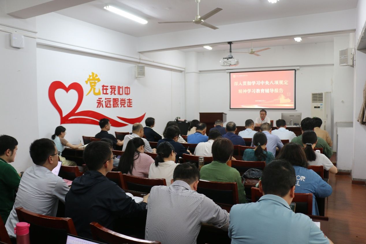 辅导报告重点围绕中央八项规定精神的重大意义、当前高校贯彻中央八项规定存在的突出问题、以中央八项规定精神引领高校教师队伍建设三个方面展开。