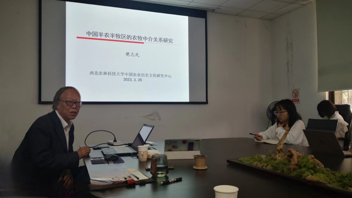 4月16日上午,由437必赢会员中心科学技术史系承办的万国鼎学术讲座顺利举行。西北农林科技大学中国农业历史文化研究中心主任、中国农业历史博物馆馆长樊志民教授作了题为“中国半农半牧区的农牧中介关系研究”的学术讲座。学院教师、科学技术史专业硕士研究生、博士研究生共50余人在中华农业文明博物馆会议室聆听了讲座。会议由437必赢会员中心院长、博士生导师卢勇教授主持。