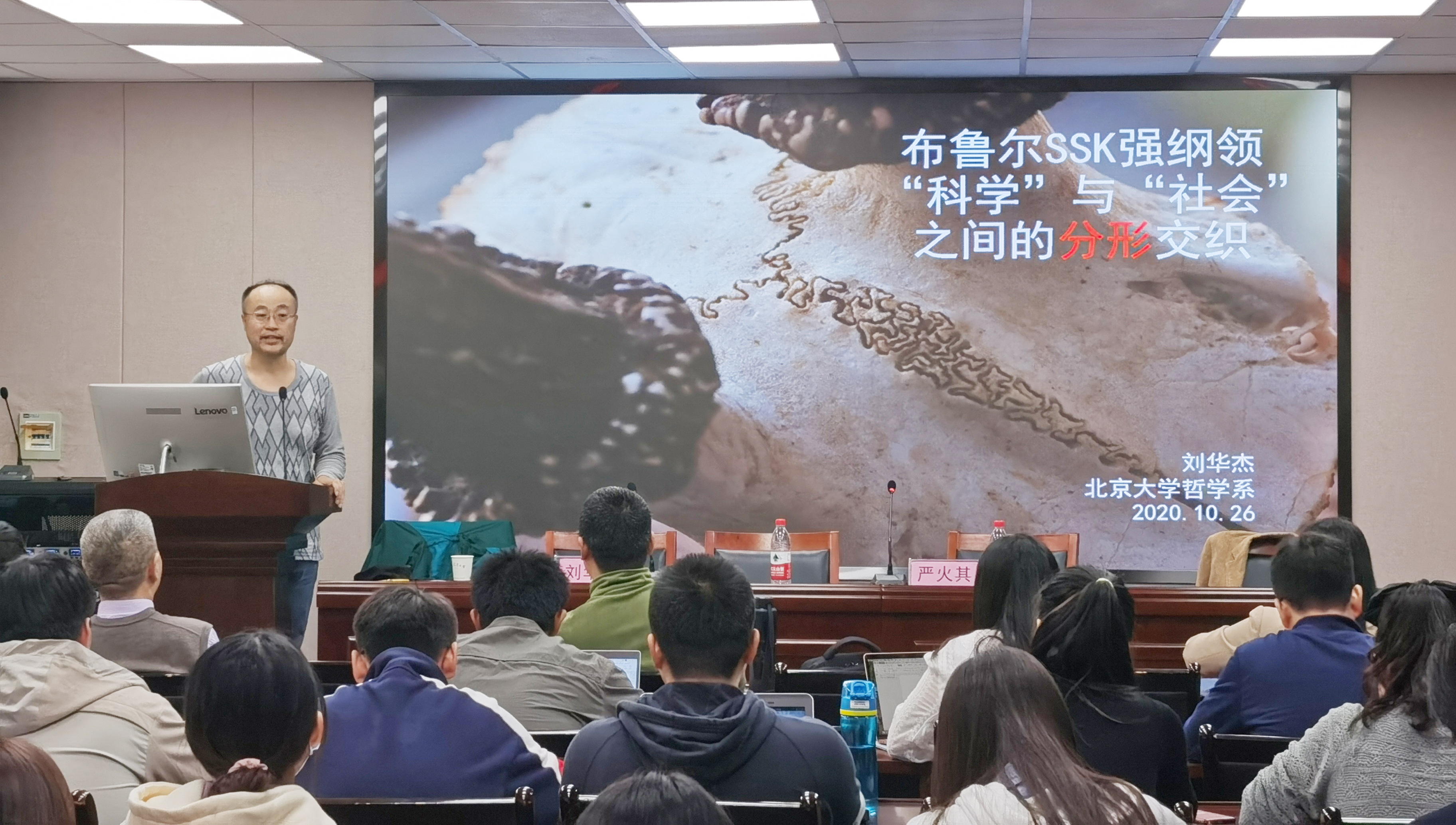 10月26日下午,北京大学哲学系刘华杰教授莅临我院,在逸夫楼6047为全体师生作了题为“布鲁尔SSK强纲领‘科学’与‘社会’之间的分形交织”的学术讲座。讲座由马克思主义学院教授、我院科技史专业博士生导师严火其教授主持,我院科学技术史、社会工作、农村发展、法律以及马克思主义学院科技哲学等学科的师生参加了本次讲座。