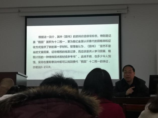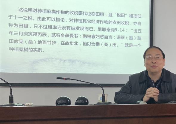 11月27日上午9点50分,南京师范大学历史系教授晋文莅临我院,在逸夫楼6046教室为我院师生作了题为“秦及汉初的田租征收方式”的学术讲座。讲座由科技史系主任沈志忠教授主持,我院科技史、社会工作、法学等专业的硕士和博士研究生,以及相关专业的老师参加了讲座。