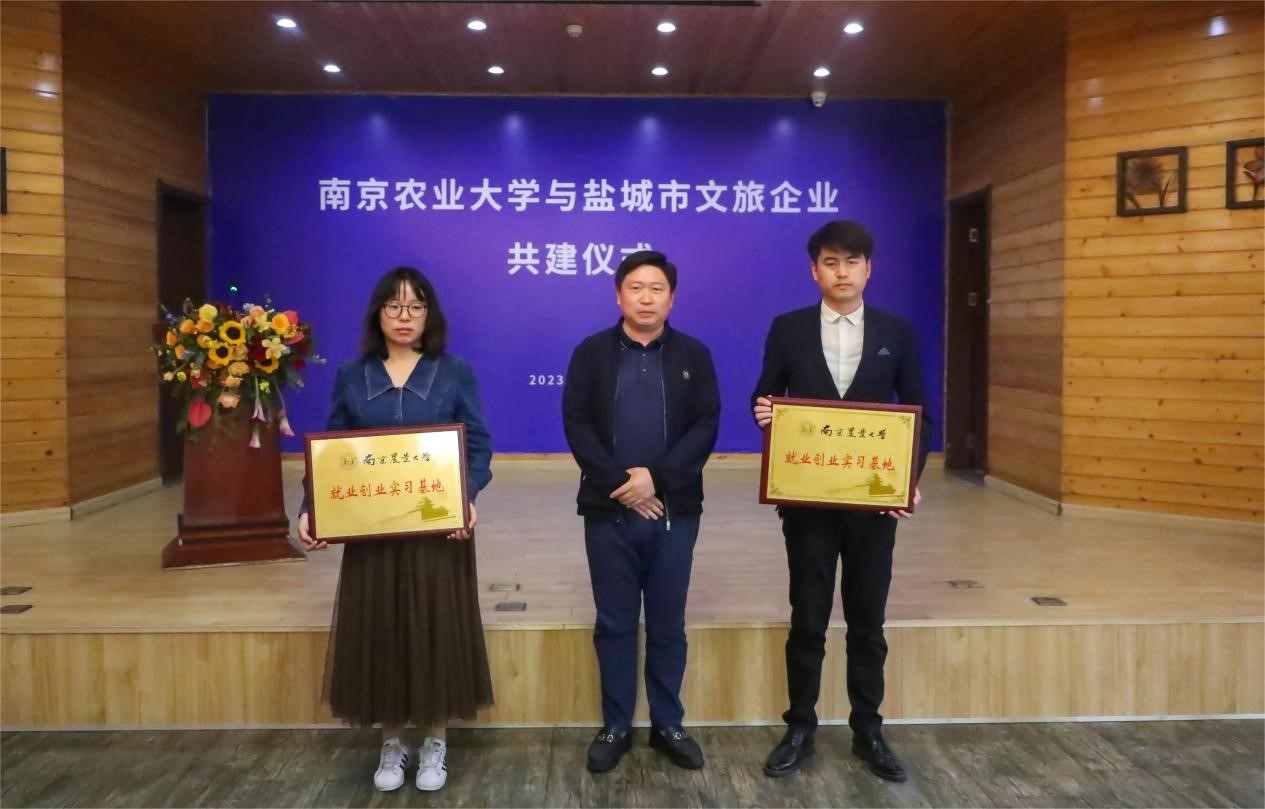 接着,戚晓明副院长先后为盐城条子泥景区、黄海森林公园、西溪旅游文化景区、荷兰花海景区、丹顶鹤湿地生态旅游区、大洋湾景区颁发“bwi437官网校外实践教学基地”铜牌,为大纵湖旅游度假区颁发“bwi437官网劳动教育基地”铜牌;冯绪猛副书记为九龙口旅游度假区、鹤鸣亭·鹤影里民宿颁发“bwi437官网大学生就业创业基地”铜牌。