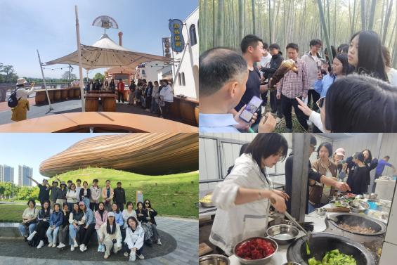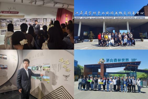 4月18日,践行20多天前金坛茅山度假区管委会杨国忠副主任和俞璐副局长的邀约,实地考察金坛茅山度假区。杨主任亲自介绍度假区管委会展厅内容,并引导同学们与“茅茅”IP开展互动交流。在茅山森林世界,同学们考察该地的亲子游市场、山野美宿、森系游乐、森养度假和网红打卡产品。在溧阳,沿着美音公路考察了葫芦村乐活世界(乡村振兴嘉年华),在溧阳博物馆系统了解溧阳的历史和文化,并前往由四位斜杠青年旧屋翻新的瓦尔登书局一探究竟。傍晚抵达我校实践教学基地溧阳天淼山庄,参加挖笋和农家灶劳动教育活动,在篝火晚会中促进班级凝聚力的提升。