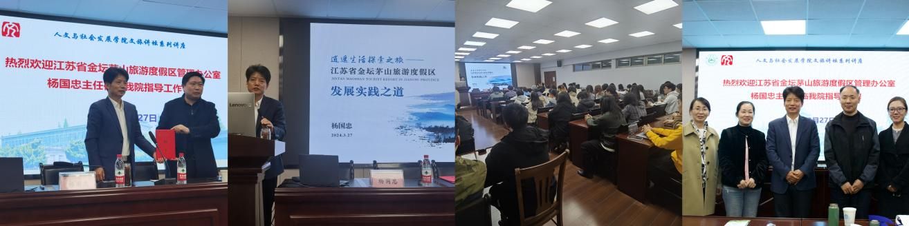 2024年3月27日下午,我校实践教学基地江苏省金坛茅山旅游度假区管理办公室副主任杨国忠作客南农,从度假区基本概况、发展现状、做法体会、逍遥之旅等四方面,为大家深度阐述了金坛茅山旅游度假区的发展实践。437必赢会员中心党委副书记冯绪猛为杨国忠颁发437必赢会员中心旅游管理专业特聘导师证书,旅游系师生、图书馆党总支书记朱世桂及相关专业学生与会学习。