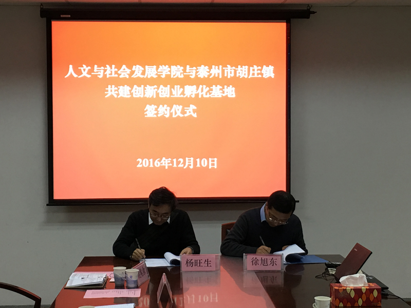 12月10日下午,我院与泰州市胡庄镇共建创新创业孵化基地签约仪式在6041会议室举行。