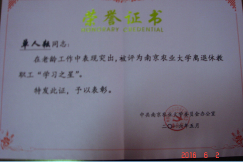 贺单人耘老师荣获学校“学习之星”光荣称号